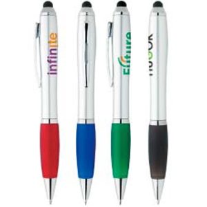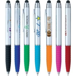 5 3/8 x 3/8 Silver Cool Grip ABS plastic twist-action ballpoint pen with device stylus point.