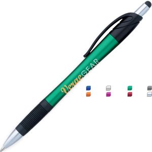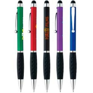 5 3/8 x 3/8 Plastic twist-action metallic cool grip pen with device stylus and pocket clip.