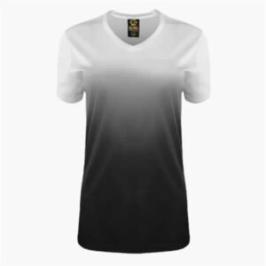 90% polyester/10% spandex, ultra-soft, moisture-wicking, UPF 50+, raglan sleeves.