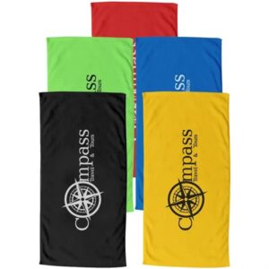 60″W x 30″H colored coastal beach towel, made with USA sourced cotton.