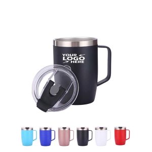 The 12 oz vacuum coffee mug with handle is made of food-grade stainless steel and double-wall vacuum insulated.