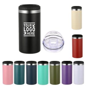 Promotional Custom Logo Imprinted 16oz 2 in 1 Double Wall Steel Can Cooler with 2 Lids