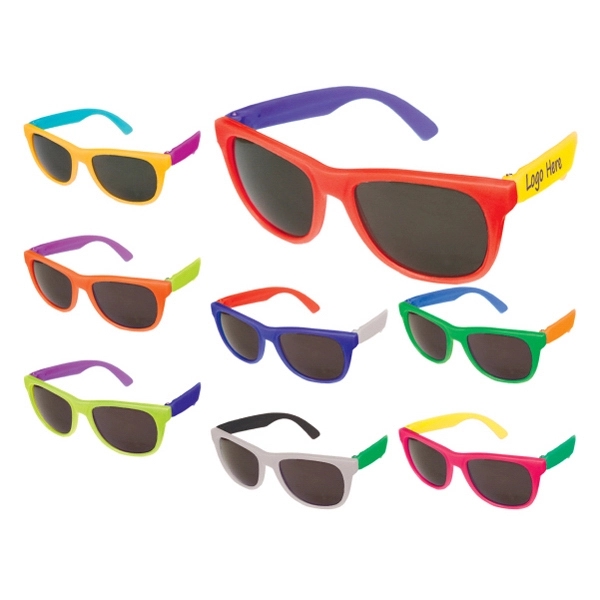 200162655When you want a unique look for your next advertising item, look no further than these Style Sunglasses with three tones! Custom made to your order, you have your choice of colors for the frame and each of the temples. These are perfect for sports teams, schools, fundraisers, awareness campaigns and so much more. Each pair of sunglasses is made of recycled materials and has UV400 lenses. UV400 meets ANSI Z80.3 general purpose UV requirements. Don’t settle anymore with stock colors!