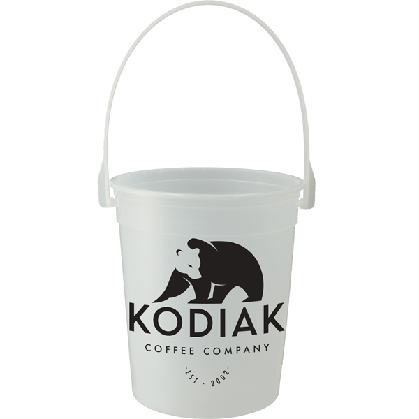 The 32oz Pail with Handle is great for a day at the beach or playground. The included handle makes it easy to carry. The top diameter measures 4.6″ and the bottom diameter measures 3.5″.