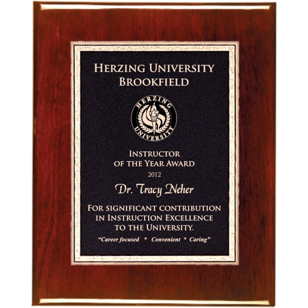 Acknowledge special individuals in your company, office or organization and let them know you cherish their contributions with this 8″ x 10″ x 3/4″ plaque! Made of high gloss rosewood piano finish plaque board with a black and gold engraving plate that features a decorative Florentine edge, this classic look is a great way to show appreciation to friends, family and others. Personalization and packaging upgrades are available to create an award that honorees are sure to be proud of receiving!