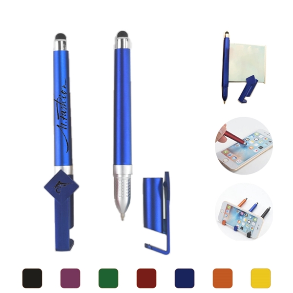 554105591The barrel is made of high-quality ABS material. The perfect advertising pen features a comfortable grip and a retractable pull-out banner from inside the barrel. Stylus at one end and a ballpoint pen opposite end (blue or black ink). The pen cap has a phone stand cap. Full color 2 sided banner and a 1 color print on the barrel. This 4 in 1 pen is perfect for business, meetings, and phone holders.