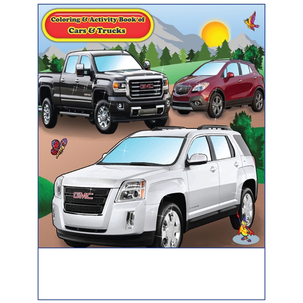 This book has been designed for local dealers. Automobile dealers love these books to help children learn about cars and keep them busy in the showroom. This specific book showcases models from individual Buick-GMC dealerships advertising their own stock. These nice coloring books are compared to newspaper and other advertisements in which specific dealers can showcase products to their local communities. Dealers send the graphics and we make your specific book! Great fun for kids and parents to learn about your dealership. (16 Page selfwrap)
