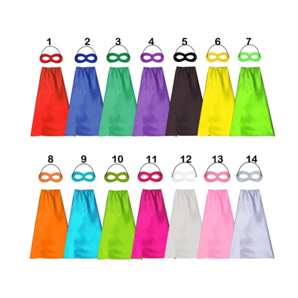 553943119This capes with soft masks sets is perfect for children dress up in the party, game, birthday, school celebrations, Act as superhero in the game. Five size and 14 colors are available. Our website price is for size 19.6″x27.5″, pls contact us freely if need quote for other size.