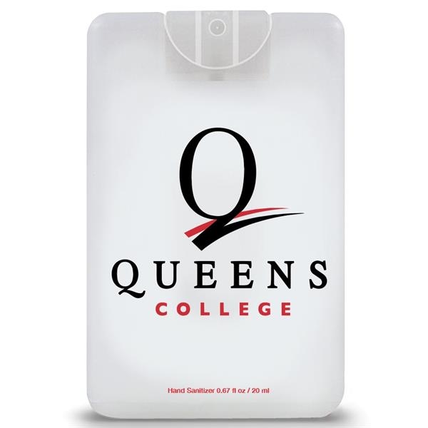 Credit Card Style Antibacterial Hand Sanitizer Spray. Credit card size fits right in pocket for on-the-go hand cleaning convenience! Push-top spray dispenser holds 60% ethyl alcohol-based, citrus-scented sanitizer. Effective at eliminating over 99.9% of germs and bacteria. 0.66-oz. of lightly scented hand sanitizer. Add your personalization or pick from standard designs. Case: Apprx 3 1/2″ X 2 1/4″.