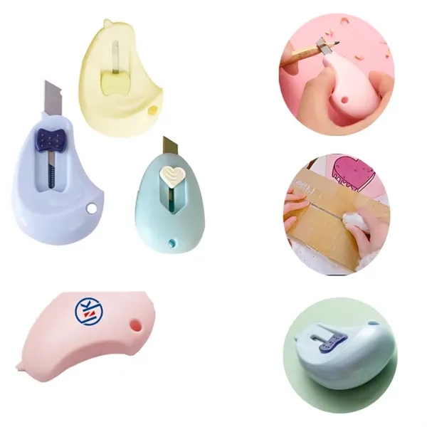 555200403The art knife imitates the shape of eggs and chicks, made of high quality plastic and retractable metal blade, safe and reliable, cute shape, easy to carry. Suitable for opening envelopes, paper cutting and express boxes. There is a hole at the bottom to hang it on a key chain. Slide the button with your thumb when in use, the blade automatically extends, release it when not in use, it can be automatically retracted and safely hidden, can be customized with a simple LOGO, become a beautiful promotional product.