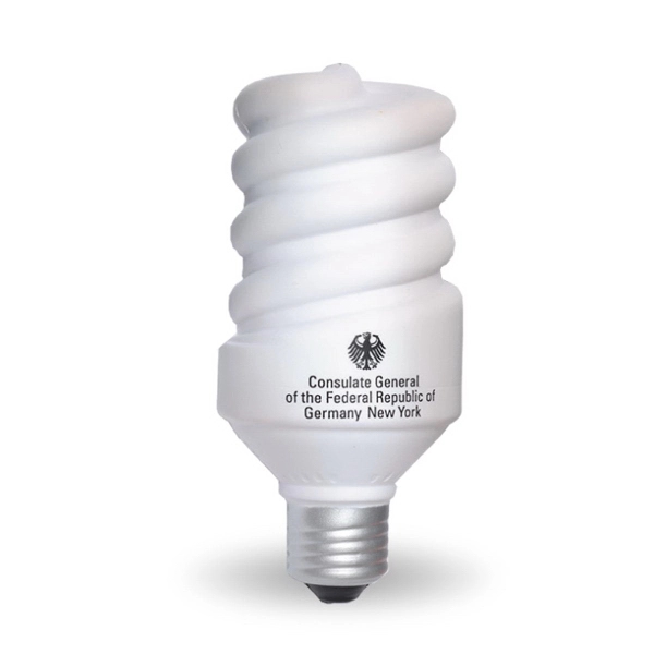Energy light bulb shaped stress reliever, 5 1/4″ x 2 1/4″ (diameter). Important note: stress relievers are not suitable for children under 3 years of age.