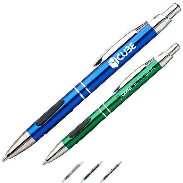 Advertise your brand with our USA decorated Engraved Metal Pens w/ Silver accents andamp; Ballpoint tip Pen! This popular Click action pen has a Silver accents andamp; Ballpoint tip. Measuring at 0.5625″W X 5.5″L, this essential office pen offers a large imprint area of 1.50″W x 0.35″H, ideal for maximum brand exposure. Perfect for any office, schools, tradeshows, and more, this economy Rubber grip metal pen is sure to boost your brand image. Order these pens today and market your brand like never before!