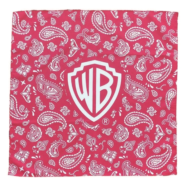 22″ x 22″ bandana made of polyester and elastic.