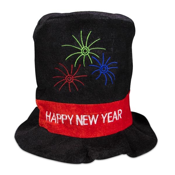 Made of black velour, these Top Hats are perfect for your next New Year’s bash! Each hat features a wide black and white Happy New Year band. One size fits most. Blank product.