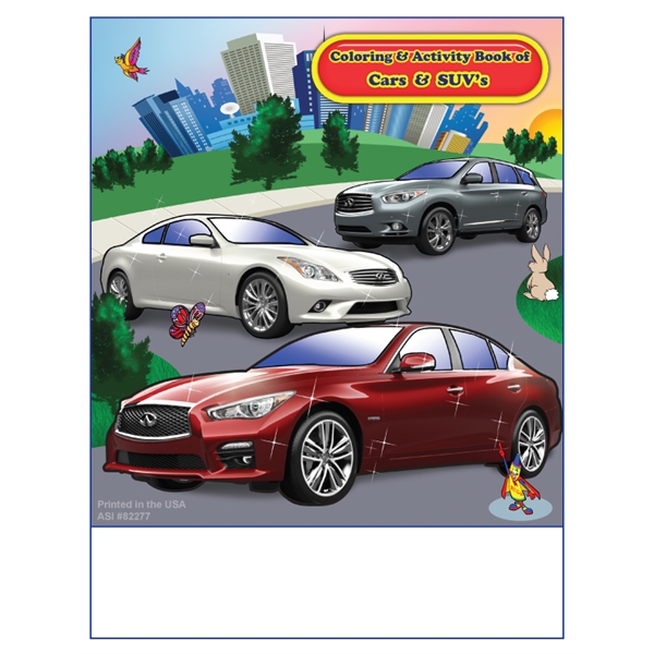 This book has been designed for local dealers. Automobile dealers love these books to help children learn about cars and keep them busy in the showroom. This specific book showcases models from individual Infiniti dealerships advertising their own stock. These nice coloring books are compared to newspaper and other advertisements in which specific dealers can showcase products to their local communities. Dealers send the graphics and we make your specific book! Great fun for kids and parents to learn about your dealership. (16 page selfwrap)