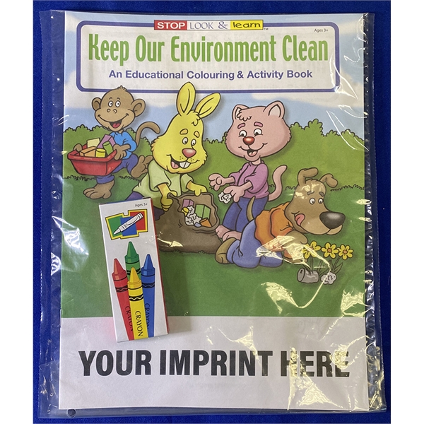 We only have one planet. Do your part to help save the world. The Keep Our Environment Clean Coloring and Activity Book is full of great ideas for kids to help the environment. Learn about littering and recycling while enjoying 16 pages of coloring, games and activities. Be a super hero today! Fun pack includes a 4-pack of crayons.This book is recommended for children ages 3 and up. Excellent salesperson leave-behind product. This product is ideal for global events, or anyone trying to protect the Earth.