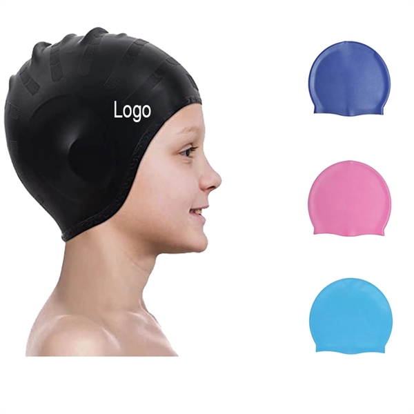 553801989This is a kids swim caps which is made of 100% high-quality and eco-friendly silicone, which features great durability and flexbility, so our swimming hat can be stretched easily for optimum fit, no deformation after repeated use. The silicone material is also odorless, non-toxic and tear-resistant. Swimming cap is created in the shape of human skull, which makes a comfortable fit for most people. With great elasticity, it is easy to take on/off , and it keeps the hair packed and tangle-free when swimming, ensuring a clear vision.The swim cap has extra room for ear covering, so it can effectively prevent overpressure and add an extra layer of protection for ears by limiting the water flow entering your ears, protecting ears from chlorine, bacteria, sand in the water.
