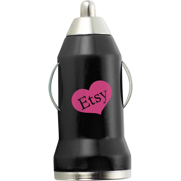 6498214The Mini Auto Charger is a convenient adapter that plugs into your car, truck or SUV’s accessory power outlet to charge your personal devices. With a white LED indicator light it’s compatible with smartphones and any device that provides a USB cable for charging (excluding iPad® and tablet devices). Input: 12-24 Volts. Output: 5V/0.5 Amp. A USB cable is not included. US Patent #D695,225S. iPad® is a trademark of Apple Computer, Inc.