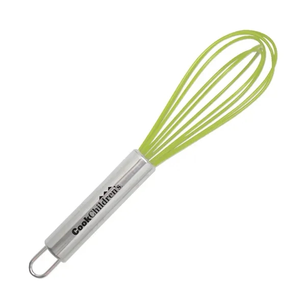 Whip your branding efforts into a profitable froth with this handy mini whisk! This 8″ silicone and metal utensil is made from FDA approved materials, and stows away with little needed space, or hangs easily from the attached loop. For excellent eggs, consummate cakes, and dynamic desserts, this little beauty will serve you well! Add your company logo or message and you’ll stir up business for cooking schools, bakeries, restaurants, kitchen supply stores or anywhere folks like to get cooking.