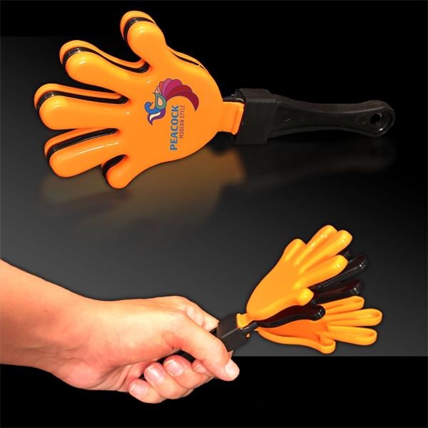 Put your hands together for this fun promo item! This 7″ high quality noisemaker is sure to make your message or logo stand out in the crowd. A great promotional product for sporting events, spirit nights and other recreational activities, it also works well to acknowledge and strengthen company goals. Offered in many color combinations, hold your applause until you have one of our classic hand clappers! This product is a choking hazard; not intended for children under 3 years old.