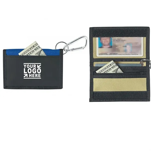 Promotional Custom Logo Imprinted Oxford ID Card Holder Coin Wallet with Carabiner