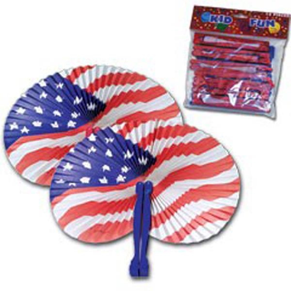 Celebrate in the heat of a July 4th Parade, stand up for Veterans Day, Flag Day or other outdoor patriotic celebrations with this American flag folding fan. This 9 3/4″ paper fan has a collapsible round design with a plastic handle — so it’s easy to slip into your palm, purse or pocket until needed. The Stars and Stripes design is sure to inspire great feeling at all kinds of marketing or social events. Assorted with red or blue handles. Product is unimprinted.