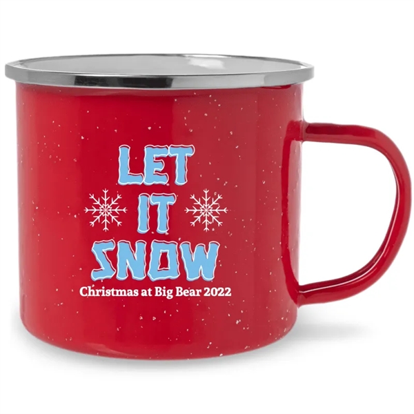 Let it snow for a white Christmas!Get your friends or family this mug as Christmas presents!Please note that the mugs come in one product color only.The mugs are made of porcelain enamel over steel.Personalize the mugs with your own message!
