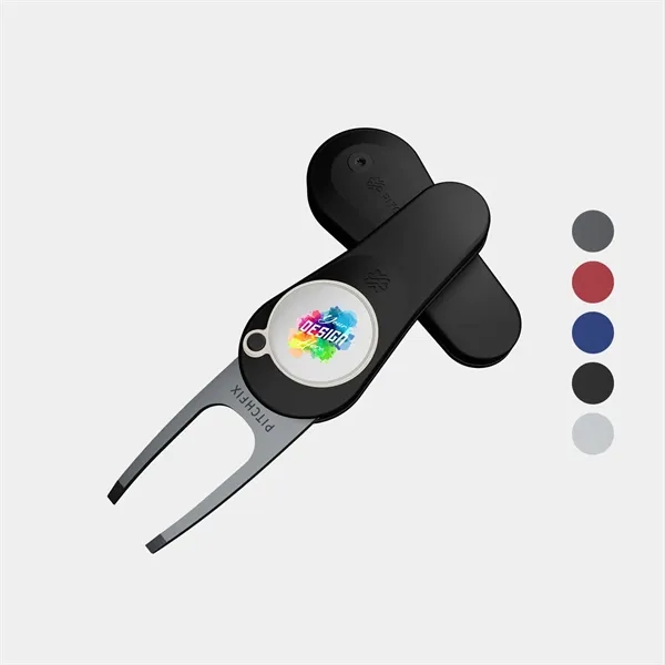 The Pitchfix® Original 2.5 Golf Divot Tool combines style and function, crafted from premium ABS and durable stainless steel for long-lasting performance. Featuring the patented switchblade function, this divot tool includes a removable, full-color logo ball marker, making it a perfect choice for golf tournaments, sponsorships, or giveaways. With five vibrant grip color options, it’s designed to match your brand identity while providing golfers with a reliable tool for maintaining the course.
