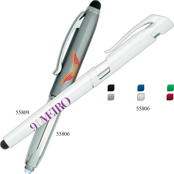 551753811Help your customers and supporters get the most out of their favorite tech and devices with these pens with capacitive stylus points. This 5 x 1/2 plastic two-piece capped pen has a smooth barrel, handy pocket clip and a built-in LED light at the tip to illuminate your work. A great idea for use on public touchscreens and ATMs or for your personal cellphone or tablet. Choose from six great colors and add your school, sports team, organizational or company logo or message to customize.