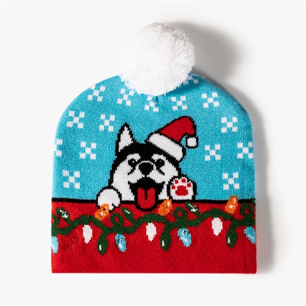 Pom-Pom Jacquard Beanie With LED Light