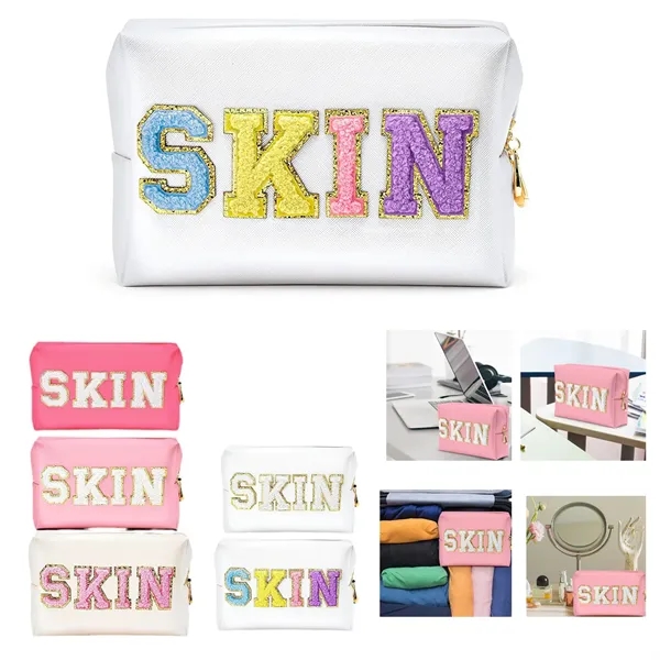 PU Leather Towel Embroidered Waterproof Makeup Bag