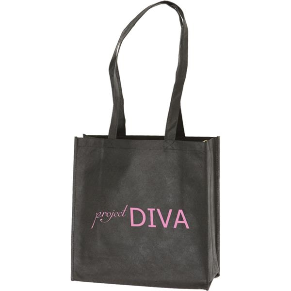This Small Tote Bag makes a great promotional product for a variety of occasions and events. Ideal for expos and career fairs, simply add your custom imprint to the soft textured fabric and hand them out with pride. Made of 100% non-woven polypropylene (80 GSM) with stitched seams, side and bottom. This bag is tear resistant, water repellent recyclable and reuseable. Perfect for event planners and charitable organizations. Easy to carry and easy on the environment too!