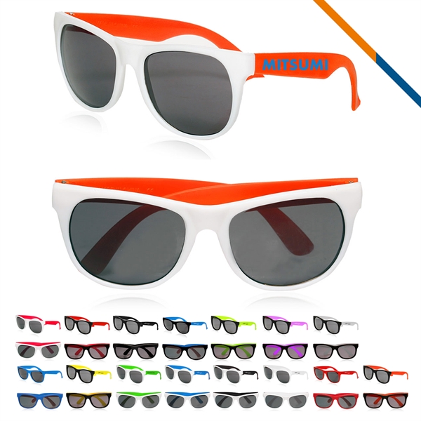 Channel your inner summer vibes with the Soli Two-Tone Sunglasses! These lightweight plastic shades are as fun as they are functional. Available in a variety of eye-catching colors, they’ll turn heads wherever you go. They offer superior UV400 protection to shield your eyes from the sun’s harmful rays. The convenient folding design allows for easy storage in your pocket or bag, making them perfect for parties, BBQs, school events, tradeshows, or promotional giveaways. 3 days rush available for 1 color imprint only upon request.