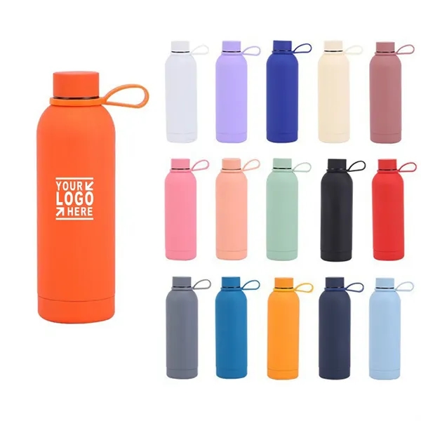 25 oz. double wall stainless steel insulated travel tumbler with silicone strap in an assortment of colors and customization.