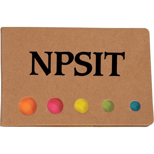 Sticky flag tote with a cardboard cover containing five assorted color flags.
