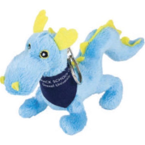 Blue Dragon Key Chain plush toy stuffed animal. Key chain with miniature stuffed Dragon. Plush toys key chain. These are great for Spring time promotions, university mascot dragon, School mascots, sports team, swim teams, Dragon school mascot, Excellent for Car dealers to give to customers that go for service or purchase a new car. All stock items are printed with a logo minimum.