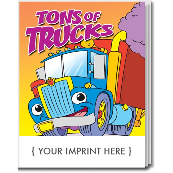 Big wheels keep on turning. The Tons of Trucks Coloring and Activity Book is perfect for your little trucker or construction worker. With a full color cover, and 16 pages of text that contain games and activities about big rig tractor trailers and construction equipment, kids will want to work overtime playing with this cool coloring book. Recommended for children ages 3 and up. Excellent salesperson leave behind product. This product is also ideal for schools, construction and trucking companies.