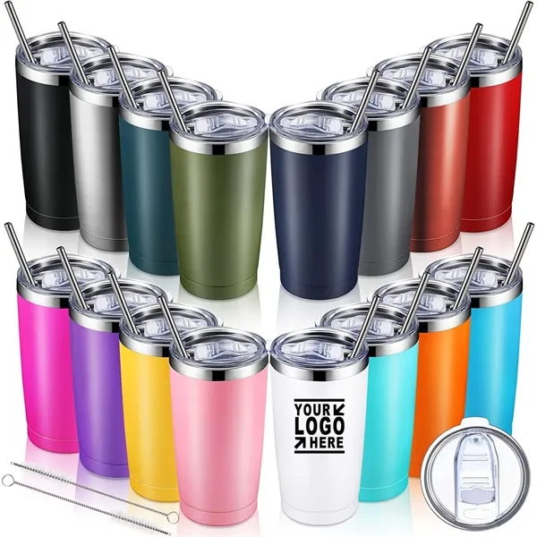 20 oz. double wall stainless steel insulated travel tumbler with slide lid in an assortment of colors and customization.