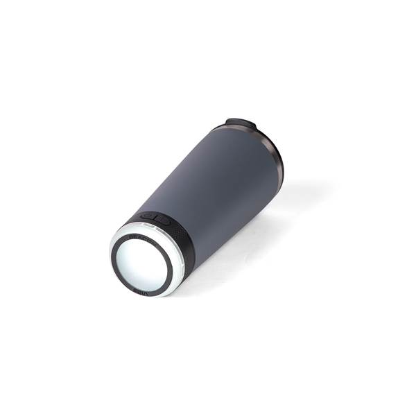 Stainless Steel Tumbler, built in water resistant flashlight. 1hr charge 8hr battery life. 20ft Diameter