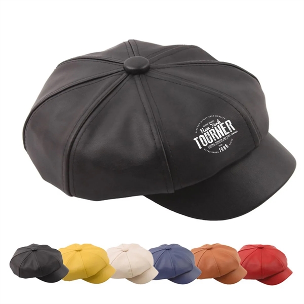 555030585This cap is made of solid color PU Leather with 8-panel crown,center button,little elasticity back design with a little puffy style. When get dirty,wipe with a soft cloth. Ideal for walking,shopping and daily use.