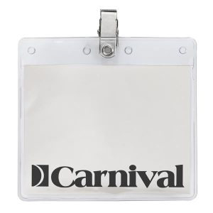 4″ x 3″ horizontal clear vinyl pouch with bulldog clip.