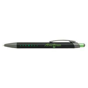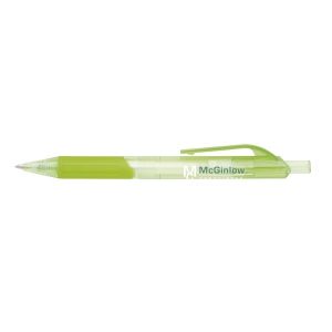 Sleek and eco-friendly translucent color plunger-action pen made with 87% Recycled PET.