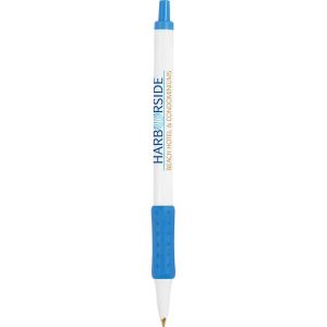 BIC® Clic Stic® 1/2″ x 5 7/16″ plastic plunger-action pen with soft dimpled rubber gripper section and break resistant clip.